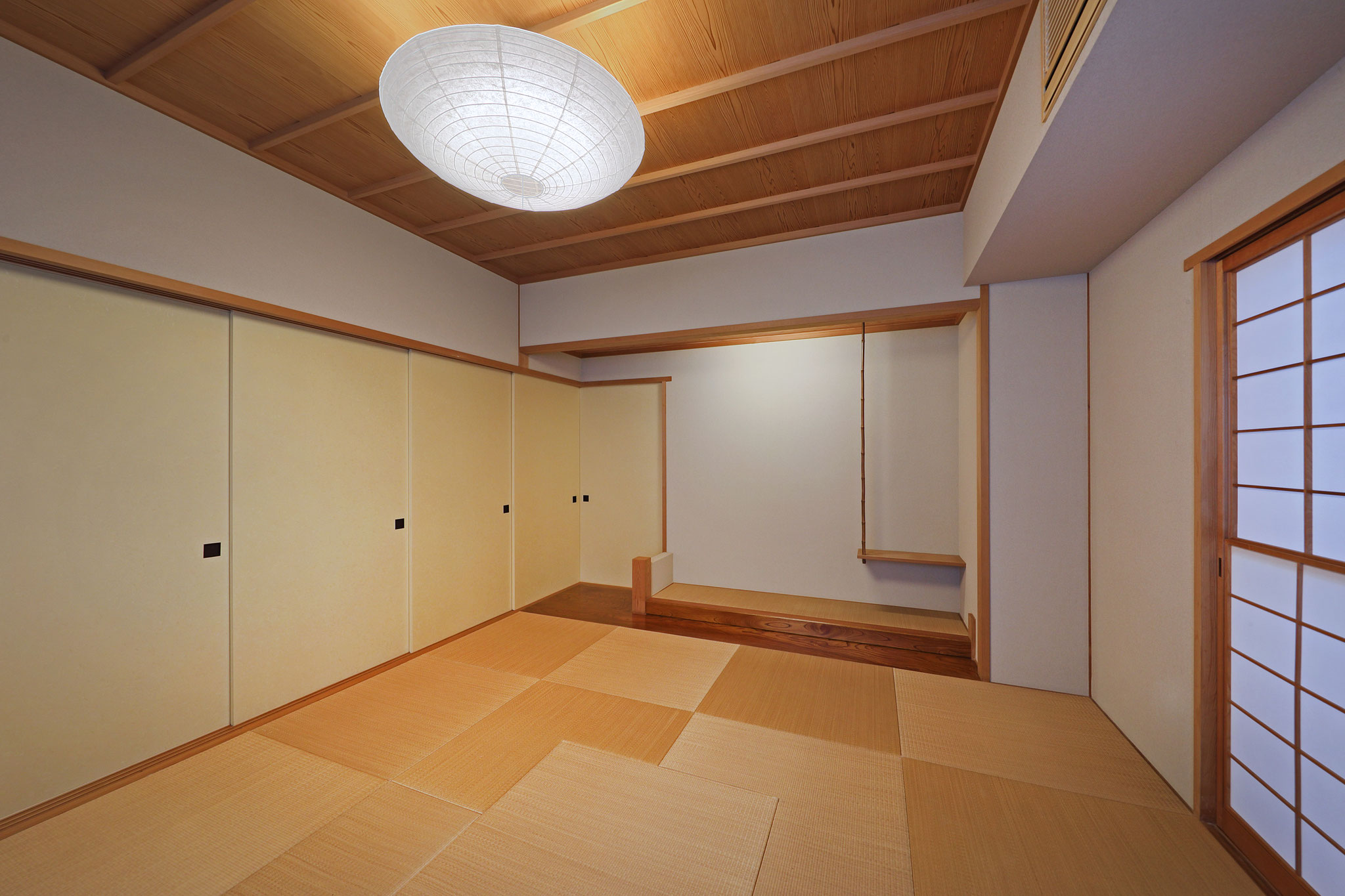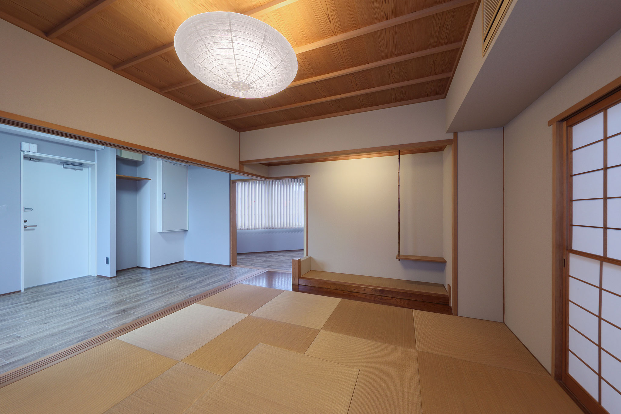 - 和室を併設することで、来客対応や社員の休憩・宿泊など、多目的に利用できるユニークな空間に。