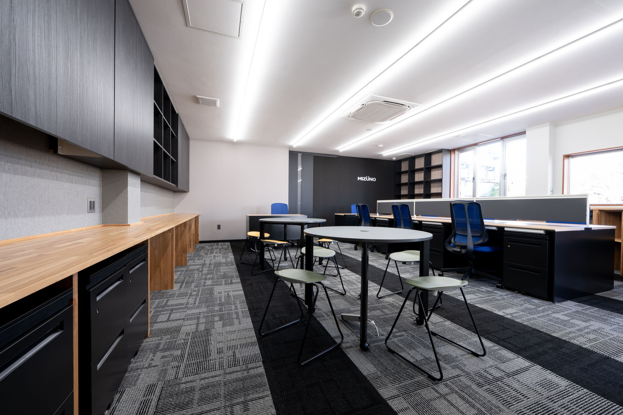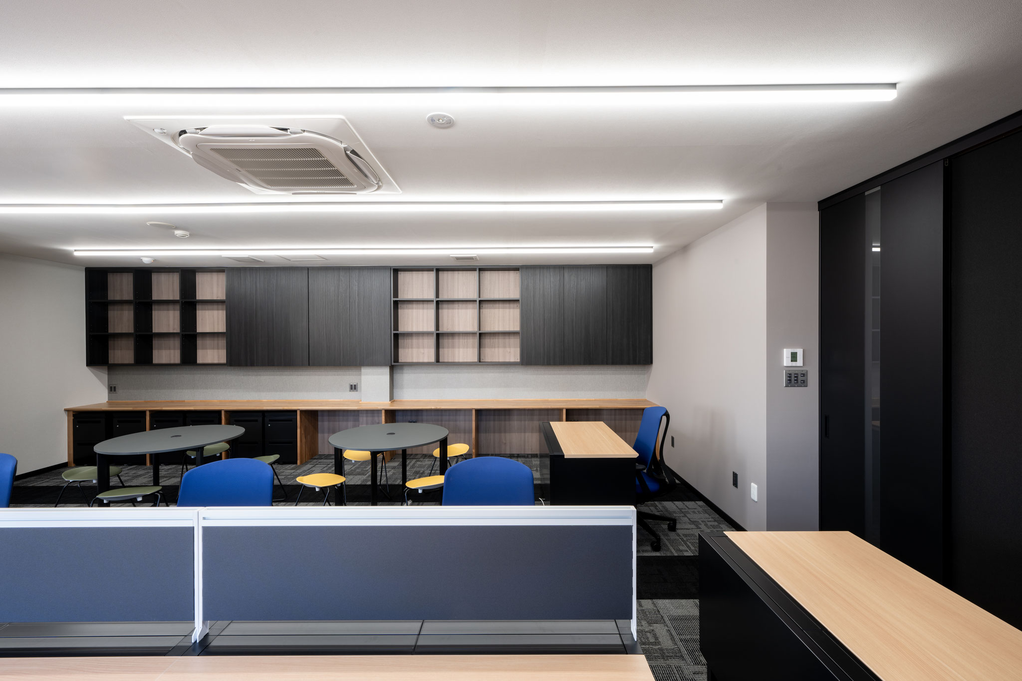 アナログ資料で管理することの多い業務のため、より効率的な業務遂行と、清潔感のあるオフィス環境を両立させるために、次の3点を考慮して設計をしました。